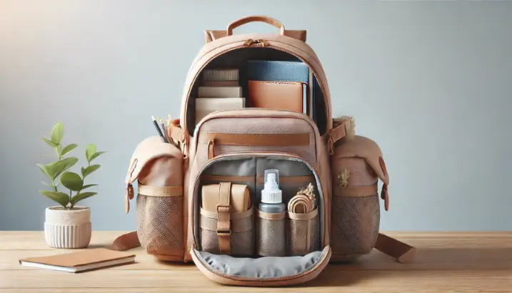 次に、サイドポケットの活用です。サイドポケットは、水筒や折りたたみ傘など、すぐに取り出したい物を収納するのに適しています。また、サイドポケットに手の消毒液やティッシュを入れておくと、必要な時にすぐ使えるので便利です。